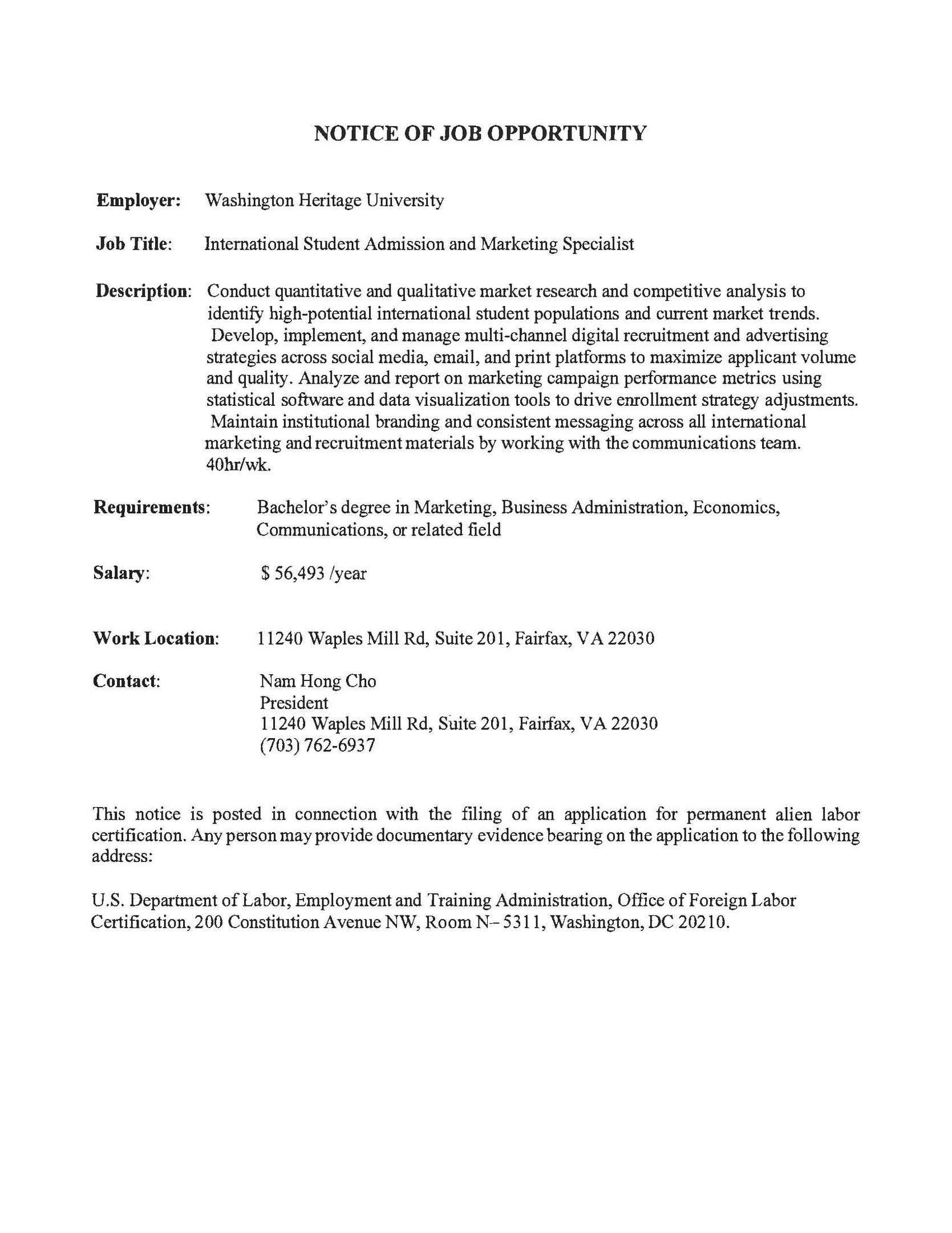 The primary responsibilities of this job revolve around conducting quantitative and qualitative market research and competitive analysis to identify international student populations and current market trends. WHU is seeking to hire as soon as possible, so please email hr@whuva.edu or info@whuva.edu with any questions.